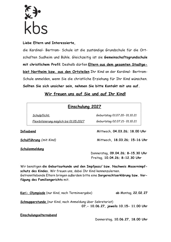 | 04.03.2026 | Infoabend Einschulungsjahrgang 2027/28 | 18.03.2026 | Schulführung | 23.03. – 07.04.2026 | Osterferien |