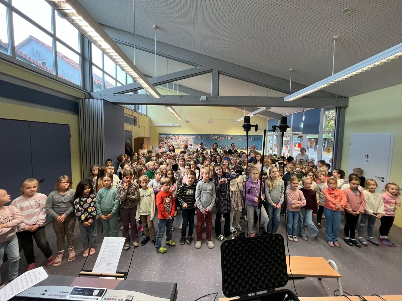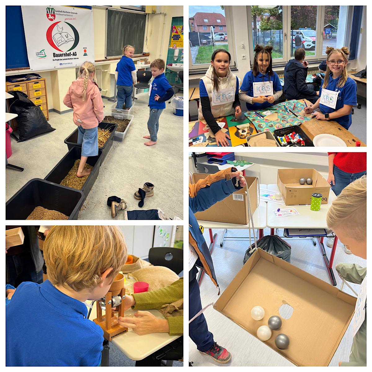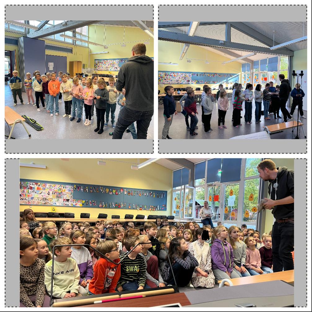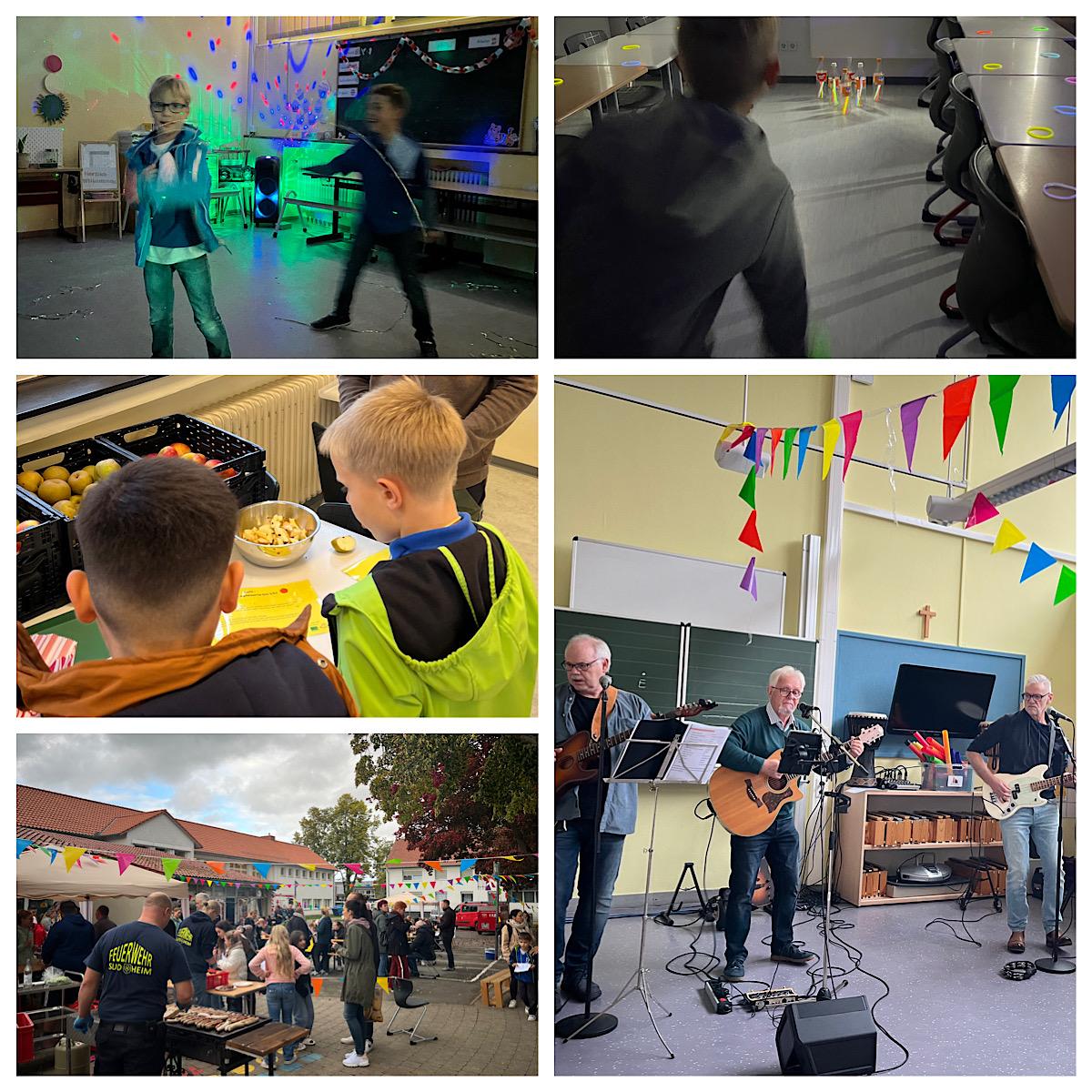 Dank des klingenden Auftritts aller Schülerinnen und Schüler startete das Schulfest mit einem schwungvollen Ohrwurm. Anschließend wurden auf dem Sudheimer Sportplatz, in der Sudheimer Mehrzweckhalle, im Schulgebäude und auf dem Schulhof abwechslungsreiche Spielstationen, kulinarische Leckerbissen, interessante Informationstafeln und -stände angeboten. Es wurde ein Gemeinschaftsbild gestaltet, es gab eine Disco, Fühl- und Geschicklichkeitsstationen, eine Schatzsuche, eine Vitaminbar, Fußball- Dart, Stationen zum Thema „Getreide mit allen Sinnen“, einen Hobby- Horsing- Parcour, Neon- Bowling, Geschicklichkeitsspiele mit Eierkartons und Bällen, Corn- Hole- Wurfspiele, eine Saftbar, herbstliche Bastelangebote, eine Gemüsepfanne, einen Grillstand, Glitzertatoos, Bogenschießen, Fußball- Bowling, einen RTW mit Reanimations-Teddy und einiges mehr. Das Fest wurde zudem durch den Live-Auftritt des Trios „Beat-Harmony“ musikalisch bereichert.