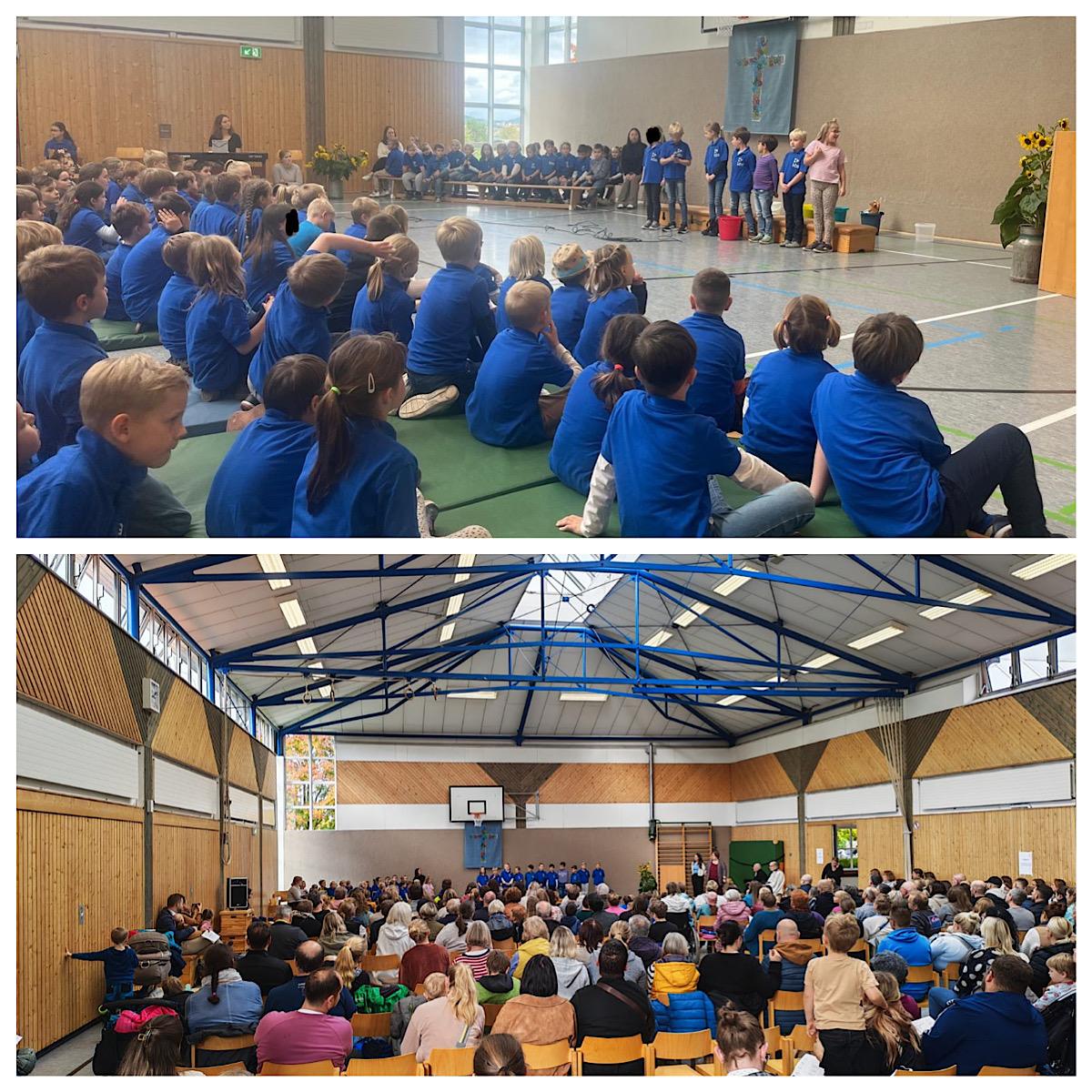 Es wurde von dem Erntedankgottesdienst zum Thema „Alles im Eimer“, der von Herrn Dr. Emmendörffer und Herrn Dechant Pape geleitet und von unseren Zweitklässlerinnen und Zweitklässlern vorbereitet wurde, eröffnet. Im Gottesdienst dankten wir für die materiellen und immateriellen Dinge, die unser Leben bereichern und wir hoffen, dass das Motto für alle Anwesenden nun nicht mehr nach Panne oder Missgeschick klingt. Die Auswirkungen des Gottesdienstes schwappten in den Eingangsbereich unserer Schule und werden uns in der nächsten Zeit weiterhin bewusst machen, wofür wir dankbar sind.