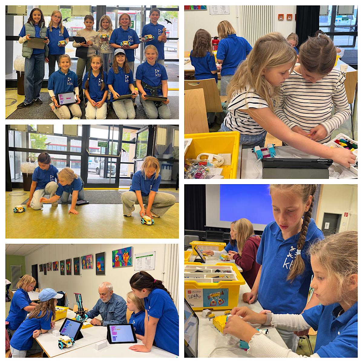 Der Robotikfreunde Verein Göttingen hat unter anderem der KBS 5 tolle „Spike-Prime-Roboter“ – Baukästen überreicht. Einige Mädchen der KBS hatten nun das große Glück und konnten an einem besonderen Tag mit Engagierten des Vereins an einem Robotik-Workshop am Corvinianum in Northeim teilnehmen. Die Schülerinnen bauten sich zuerst nach Anleitung ihren eigenen Roboter. Anschließend programmierten sie verschiedene Funktionen und testeten sich und die Funktionen des Roboters aus. Sie hatten dabei viel Spaß und waren begeistert, dass der Roboter nicht nur verschiedene Wege fahren konnte, die sie programmierten, sondern beispielsweise auch schreiben konnte und Töne von sich gab. Die Neugierde der Mädchen war riesig, sodass sie naturwissenschaftliche Phänomene selbstständig und handlungsaktiv erfahren konnten. Als krönender Abschluss wurde den Mädchen noch ein Roboterhund vorgestellt, der bei den Kindern große Bewunderung und Verblüffung hervorrief.